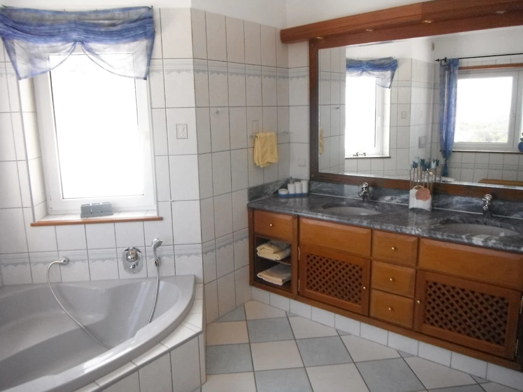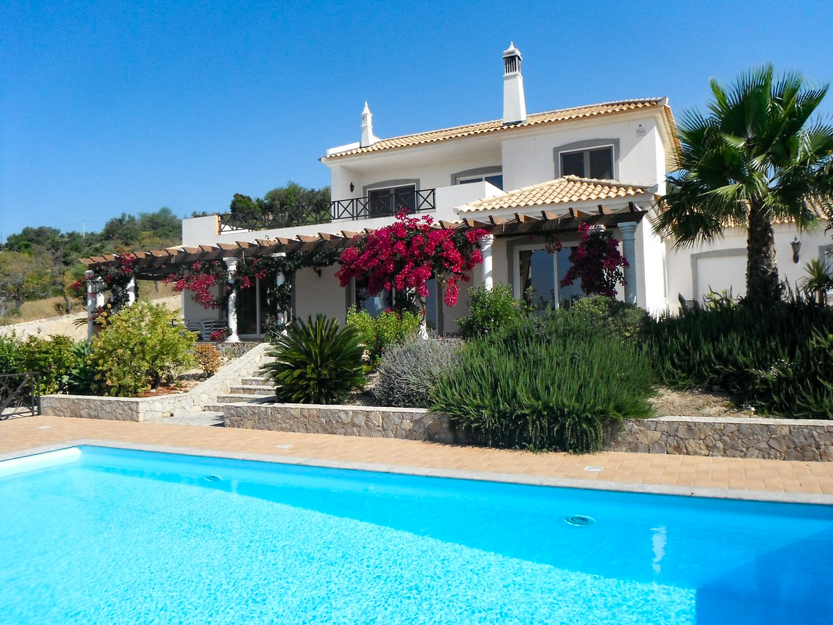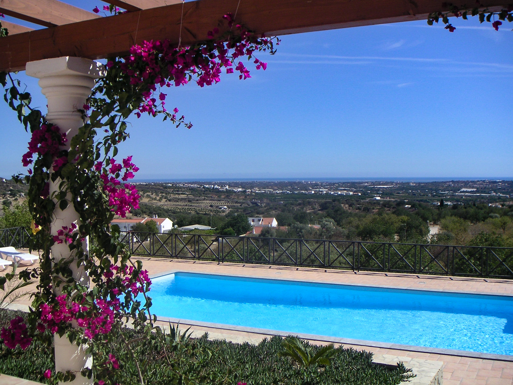 The luxury Villa Monte e Mar with sea view is located between the mountains and the sea, very quit and private. The property is situated in the hilly Algarve and has no direct neighbours. It lies about 10 km north of Faro, close to the picturesque village Estói, with a palace of the 18th Century. The transfer time from Faro airport to the villa is only 15 minutes. The Villa with its spacious terraces within almond-, fig-, dive- and Cabot trees offers you a breathtaking view of the Atlantic. Here you can find the traditional Portugal, away from mass-tourism, but nevertheless close to the nicest beaches and the best golf-courses. Close to the villa there is a typical Portuguese restaurant, which we can recommend. Around the house there are various terraces, where everybody can find a special place for himself. The equipment and the furniture are very exclusive and the love for detail can be discovered in each room.