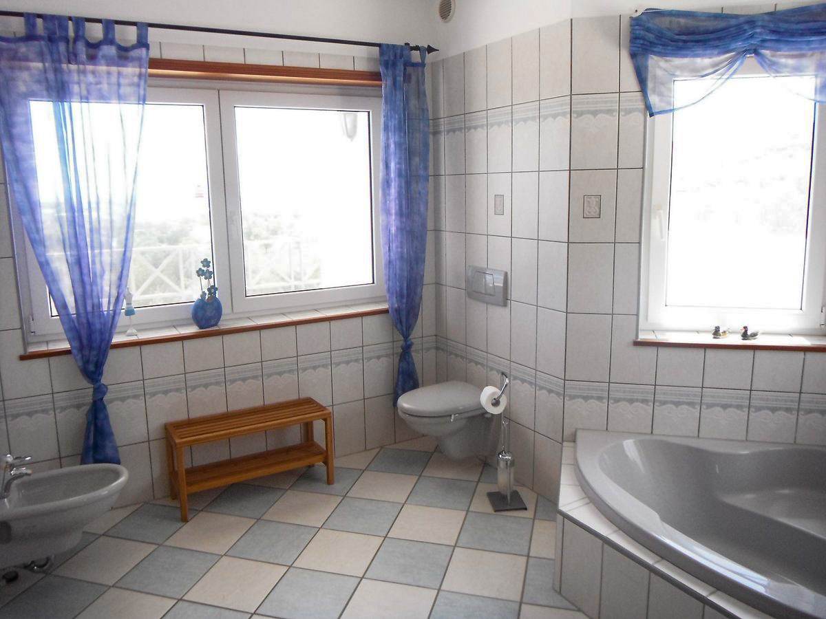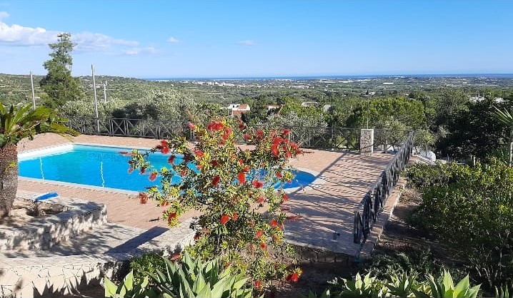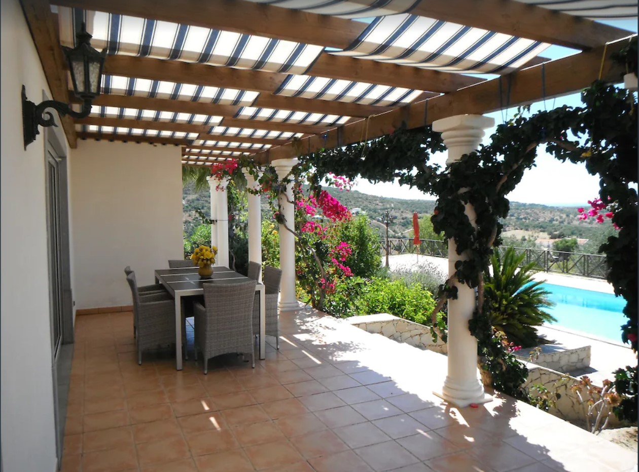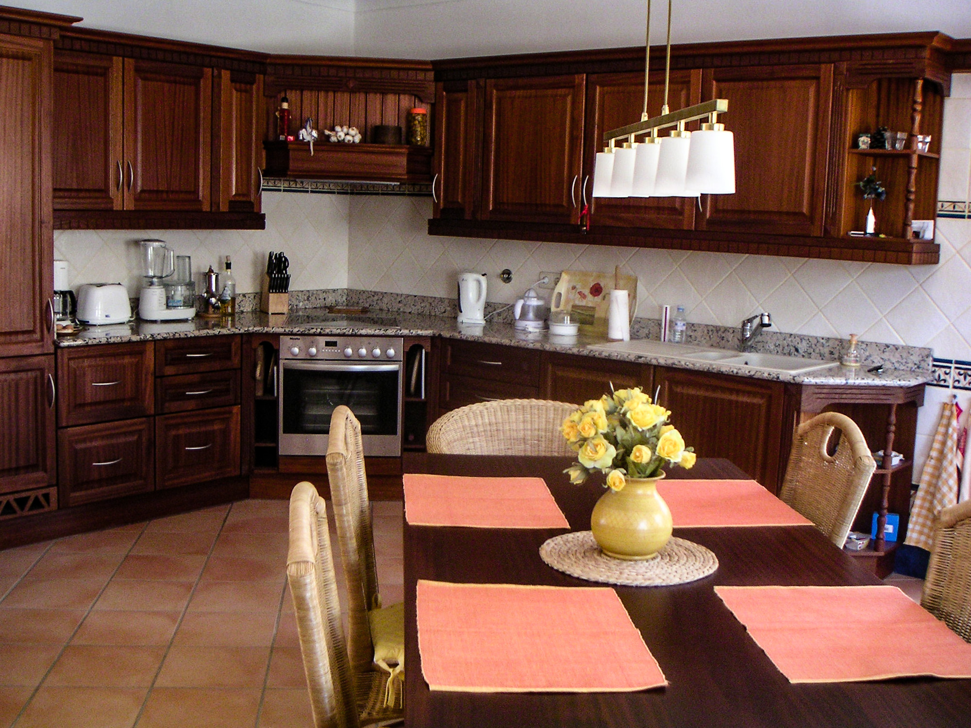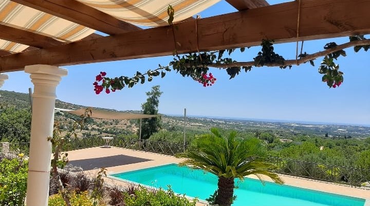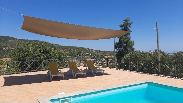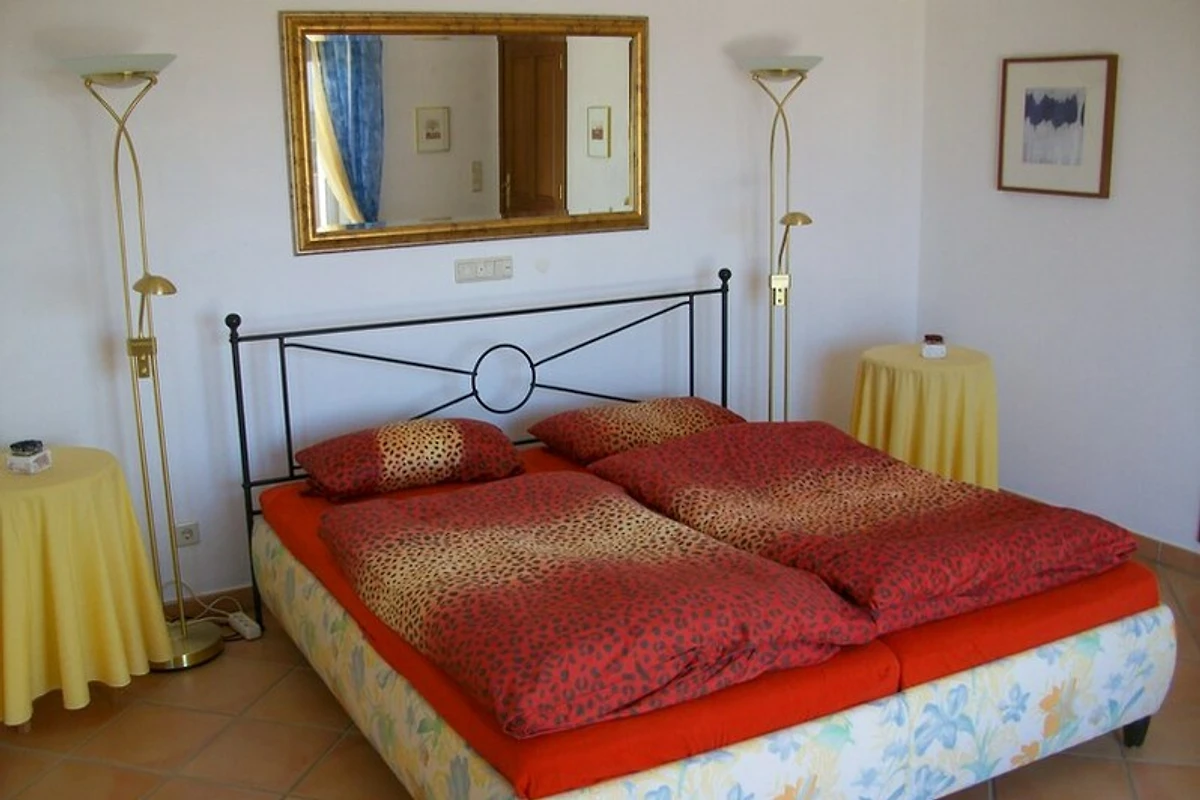 The Villa consists of a ground floor with entrance hall, spacious living room with Sat TV (international channels) and fireplace, open to the dining area. A fully equipped kitchen with high quality appliances, as fridge/freezer, dishwasher, ceramic hob, oven, microwave, etc., laundry room with washing machine, 2 bedrooms with double beds and access to the terrace, 2 bathrooms (one with shower the other one with corner tub with shower). The first floor has a dressing room with fitted wardrobes and access to the master bedroom with king size bed, large bathroom en-suite (corner tub with shower). A spacious south facing balcony of 65 m² offers a fantastic panoramic view to the ocean. In front of the terrace with garden furniture there is the 5x10m pool with a Roman staircase. Sun beds, garden furniture and an outdoor shower are available, as well as a BBQ. The villa is equipped with air condition. The central heating system make the villa also comfortable during the colder months. Wi-Fi exists.