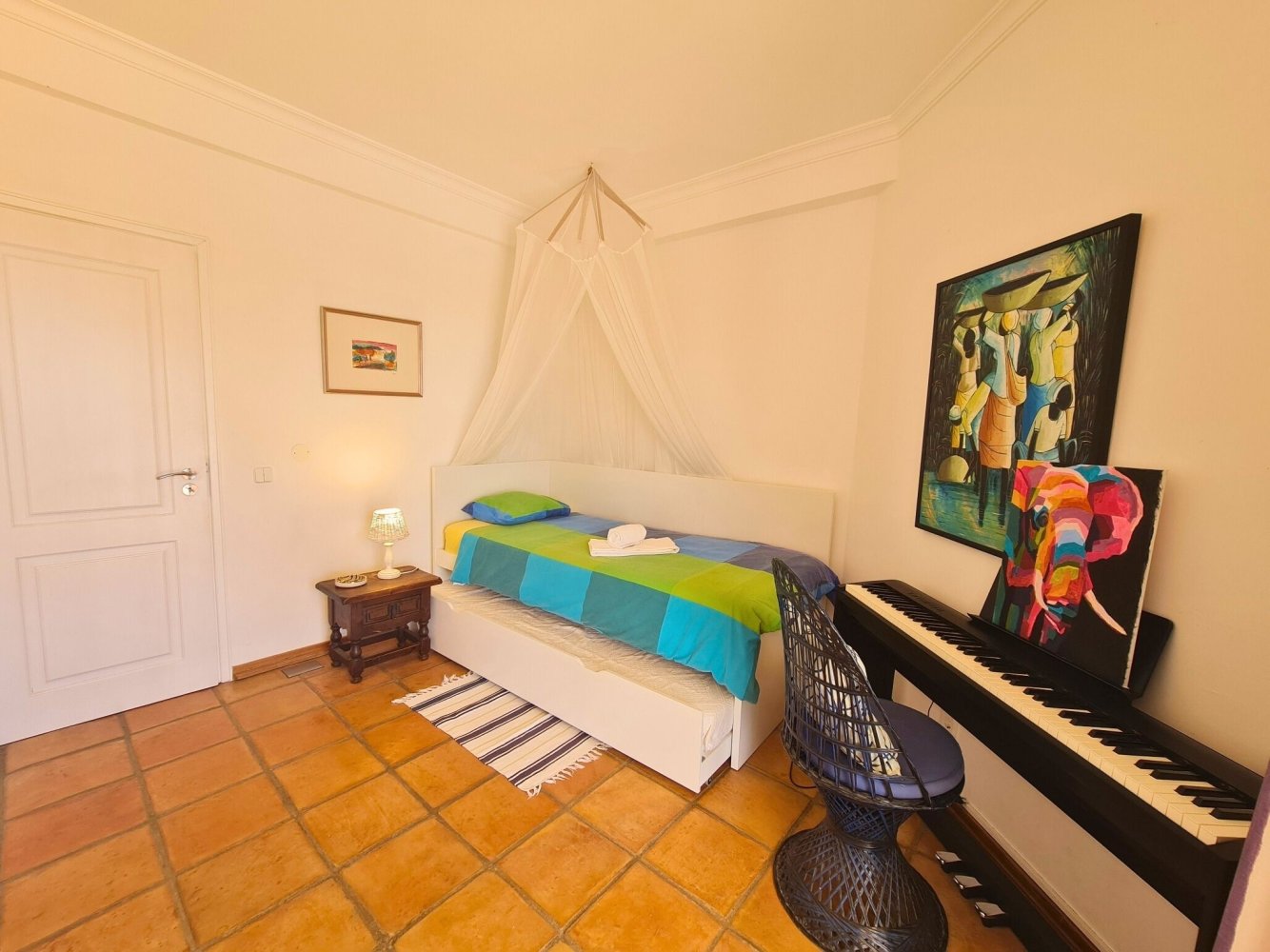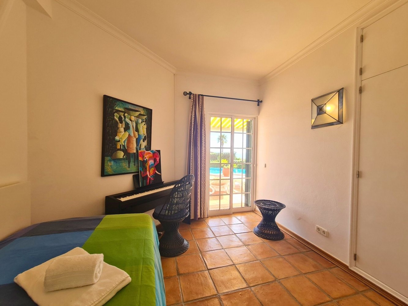 Zur Ausstattung gehören außerdem Fußbodenheizung, Safe, Fliegengitter in den Schlafzimmern und Bädern, mehrere Ventilatoren sowie kostenloses WLAN im gesamten Haus. Für Musikliebhaber steht ein E-Piano zur Verfügung.